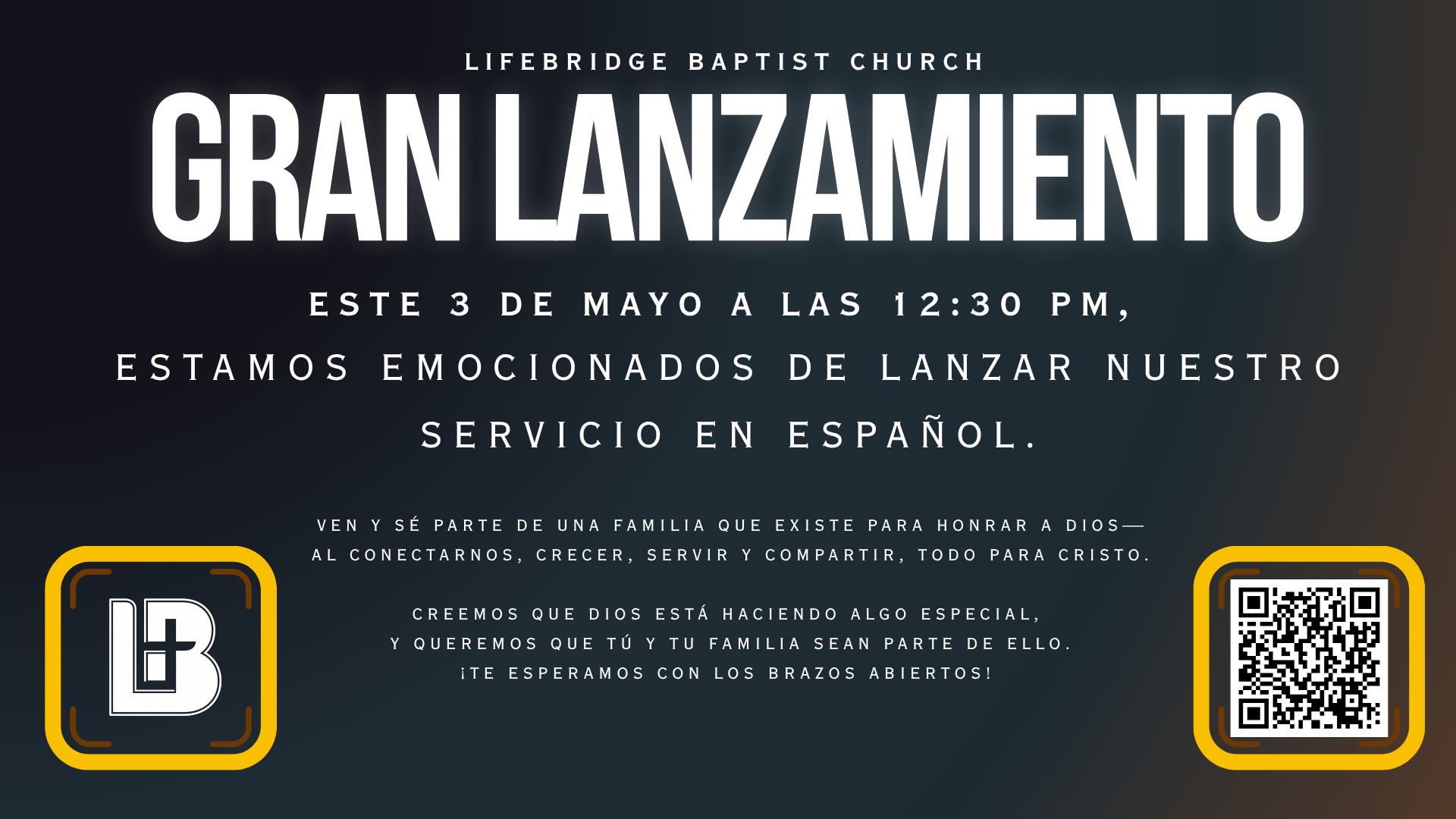 Existimos para edificar vidas que honran a Dios al conectarnos, crecer, servir y compartir—todo para Cristo.
